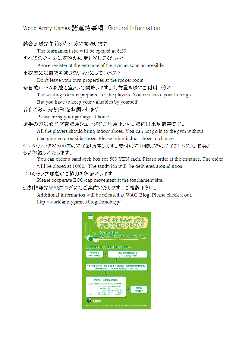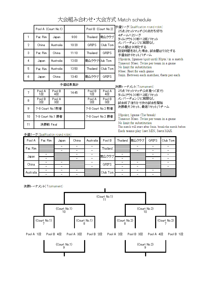 The team captain should come to the tournament desk, when the round robin finish (After the match No.6). We will announce you that the result of the qualification and tournament match-ups.